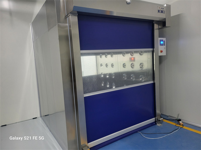 傳統風淋室多采用手動門或緩慢的自動門,而快速卷簾門風淋室的門體可在1-2秒內迅速開啟或關閉,大大減少了等待時間,提高了車間人員或貨物流轉效率。特別適用于物流通道頻繁使用的場景,減少空氣污染的可能性。